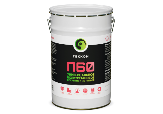 Геккон П60 - Высокопрочное полиуретановое однокомпонентное покрытие, которое наносится на основание многослойно, благодаря чему обеспечивается бесшовное высокопрочное, износостойкое и водонепроницаемое покрытие.